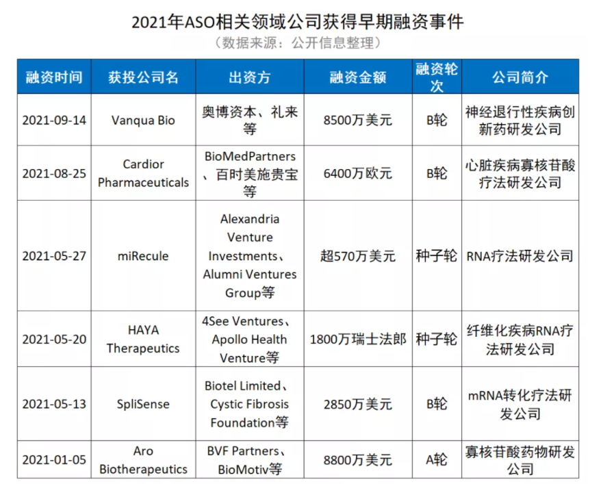 4.ASO新锐企业获得资本看好,出资方包含大型药企