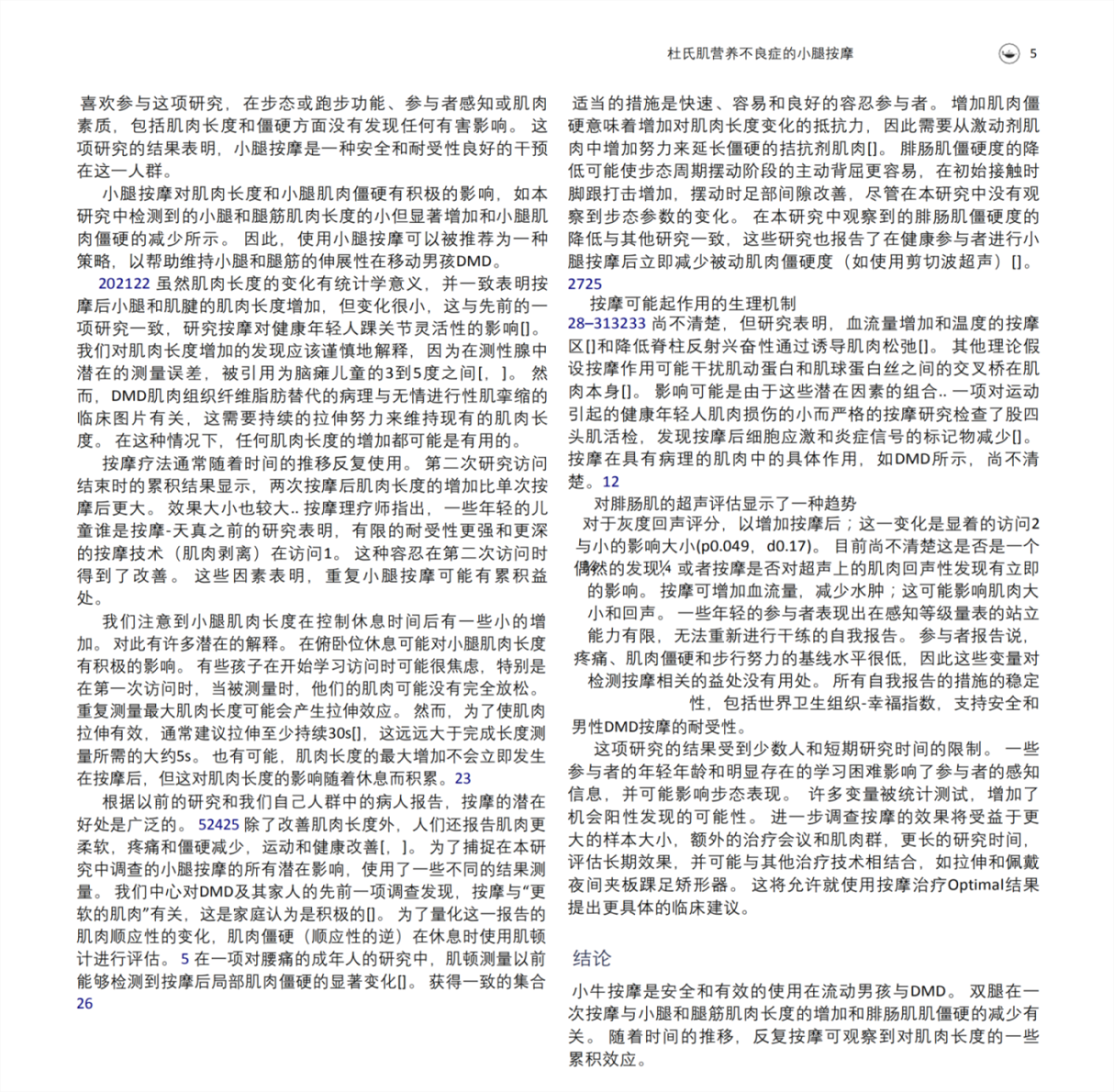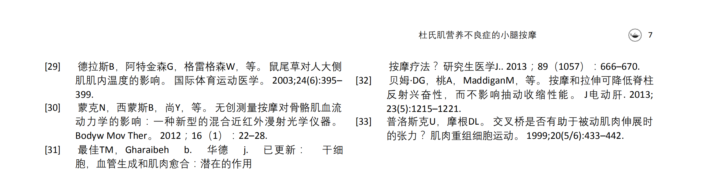 小腿按摩对杜氏肌营养不良男孩的影响:一项前瞻性介入研 究chinadmd1年前发布关注私信4936 机器翻译,仅供参考,欢迎指正错误。 THE END最新文章 喜欢就支持一下吧 分享QQ空间微博QQ好友复制链接收藏